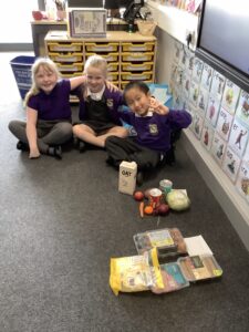 In D.T, children have been sorting foods into animal and plant products. The discussion around ‘baked beans’ had the children and Mrs Stephenson laughing!
